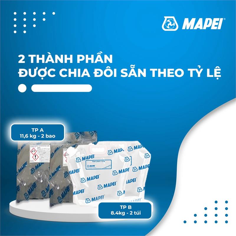 Tỷ lệ trộn thành phần A (bột): thành phần B (lỏng) theo bịch chia sẵn cho bộ 20 kg.