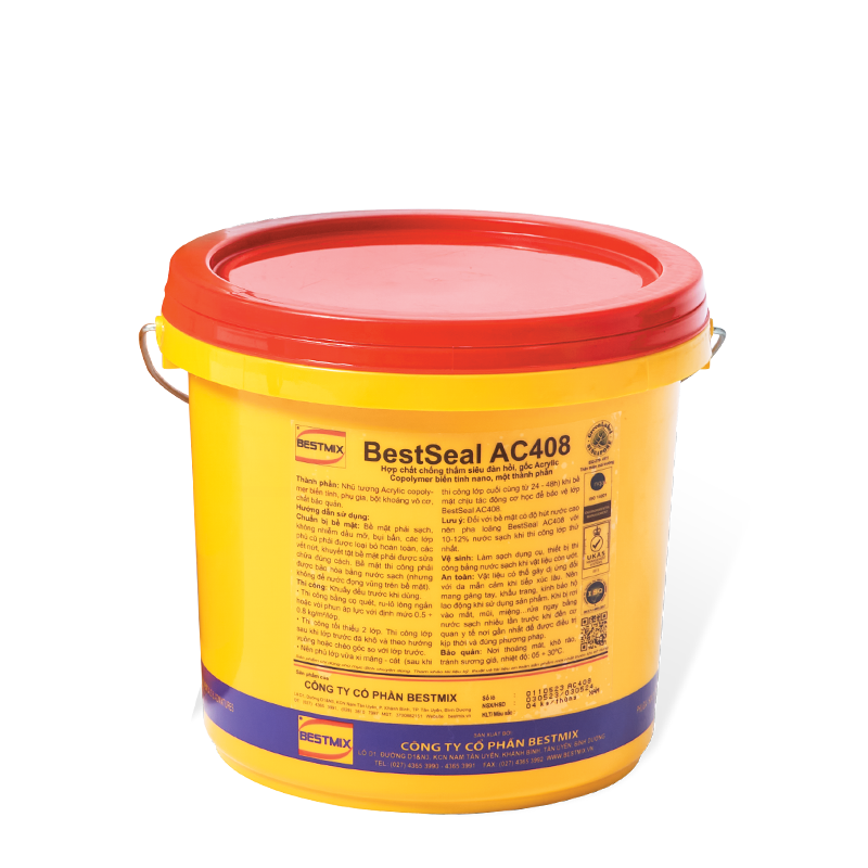 • BestSeal AC408 là chất phủ chống thấm siêu đàn hồi, một thành phần, gốc Acrylic Co-polymer biến tính công nghệ nano với tính năng cường độ bám dính cực cao.
