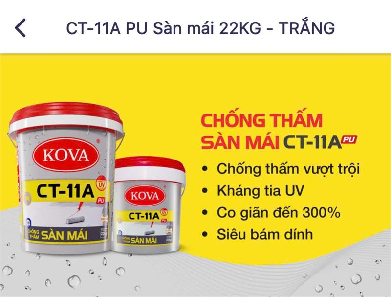 Lớp chống thấm (02 - 03 lớp): Chất chống thấm KOVA CT-11A PU Sàn mái.